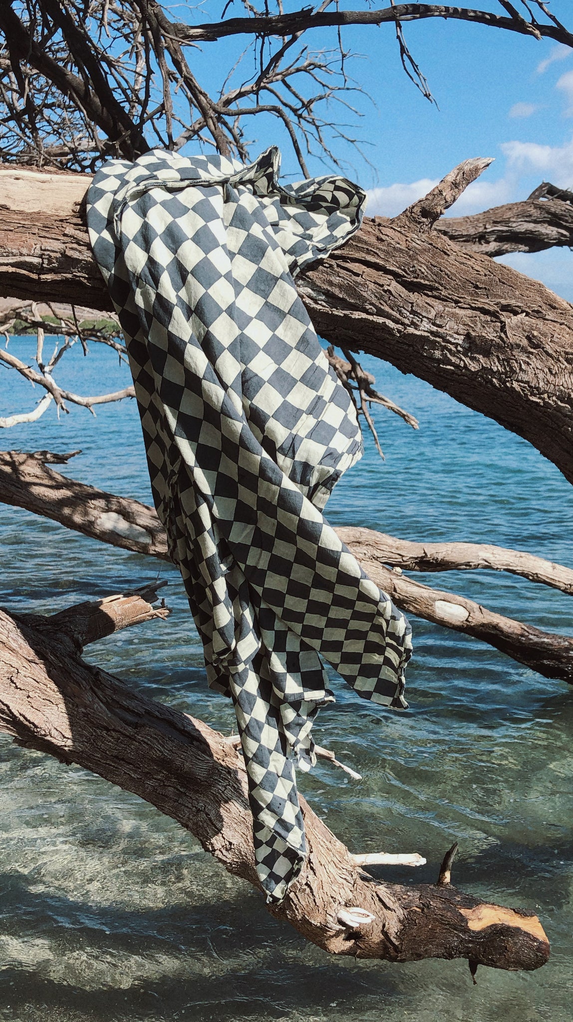 Organic cotton hand printed checker pareo / scarf / sarong / beach sheet / everything fabric. Perfectly oversized and super soft. 56" x 72"