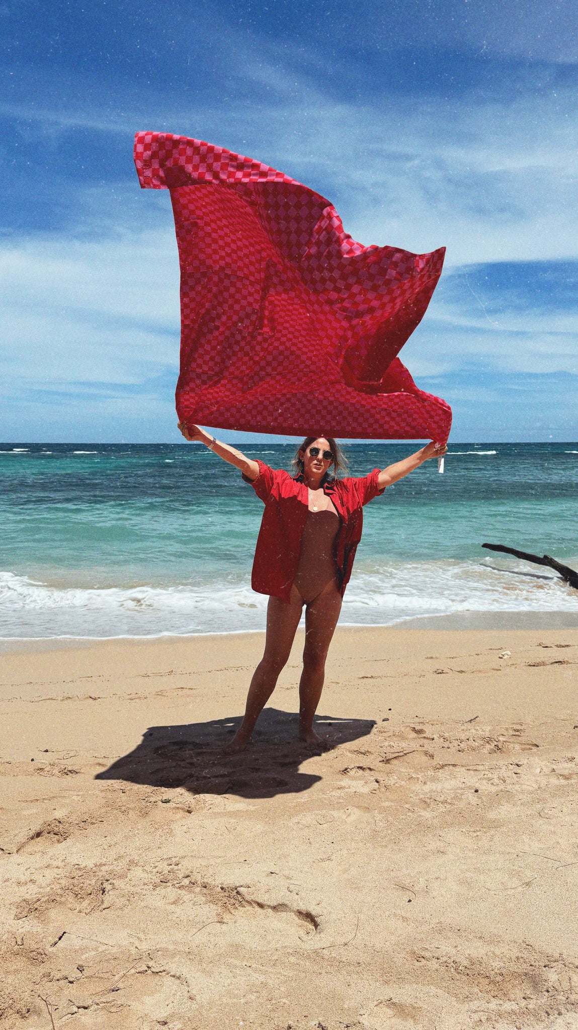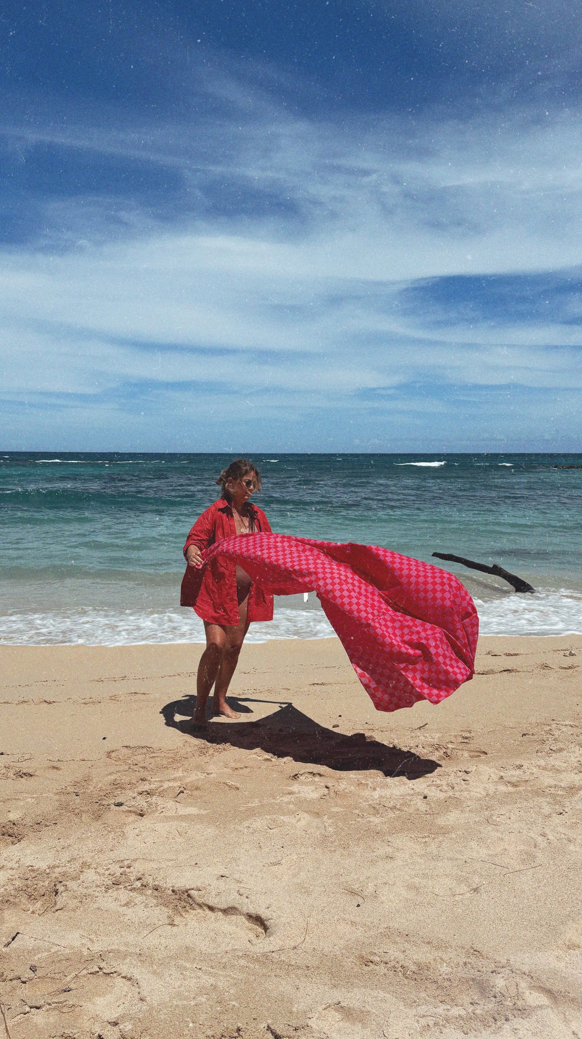 Organic cotton hand printed checker pareo / scarf / sarong / beach sheet / everything fabric. Perfectly oversized and super soft. 56" x 72"